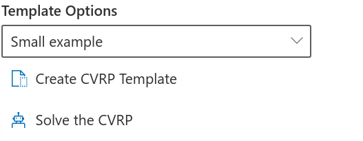 First, select a Template option from the dropdown and then click on Create CVRP Template. This will create a new CVRP Data worksheet or replace an existing one.