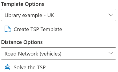 The TSP solver can be used to find the shortest route which visits each of the locations provided including returning back to the starting location. See the TSP Overview section for more details. The TSP model reads and writes data to a worksheet named TSP Data